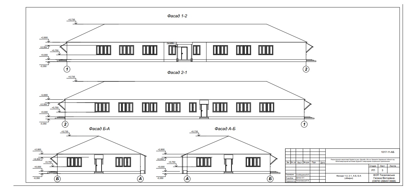 Projects on reconstruction of existing buildings for social housing (after 2014 for residents of Luhansk and Donetsk regions), repair of existing buildings, thermo modernization, repair of structural elements, networks were developed. Projects can be provided upon request.