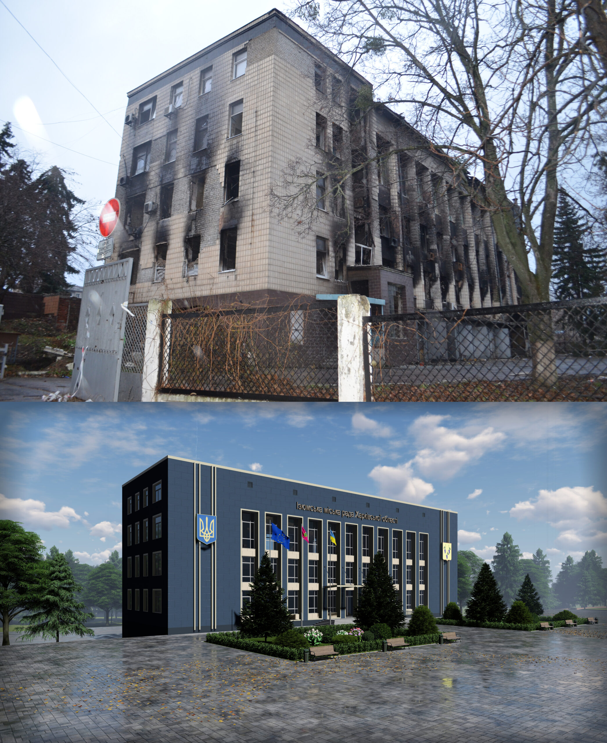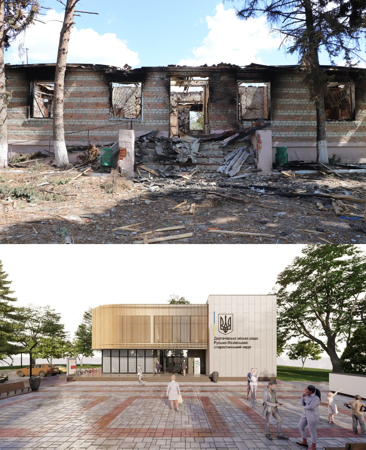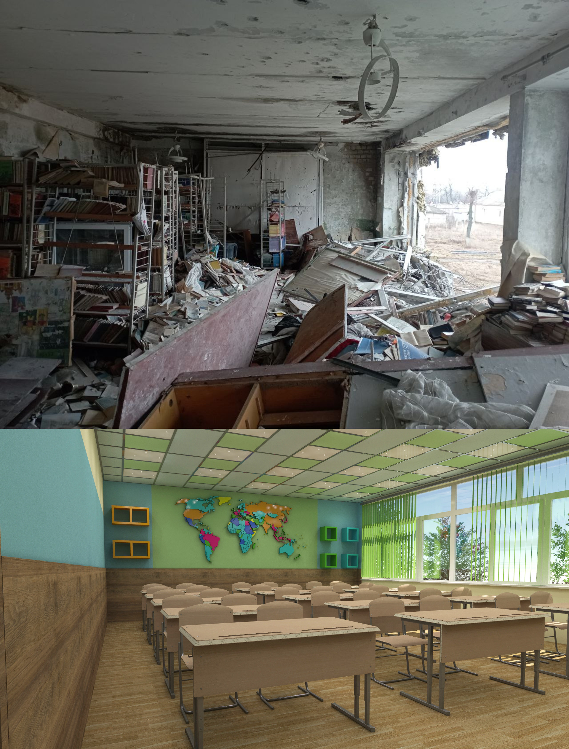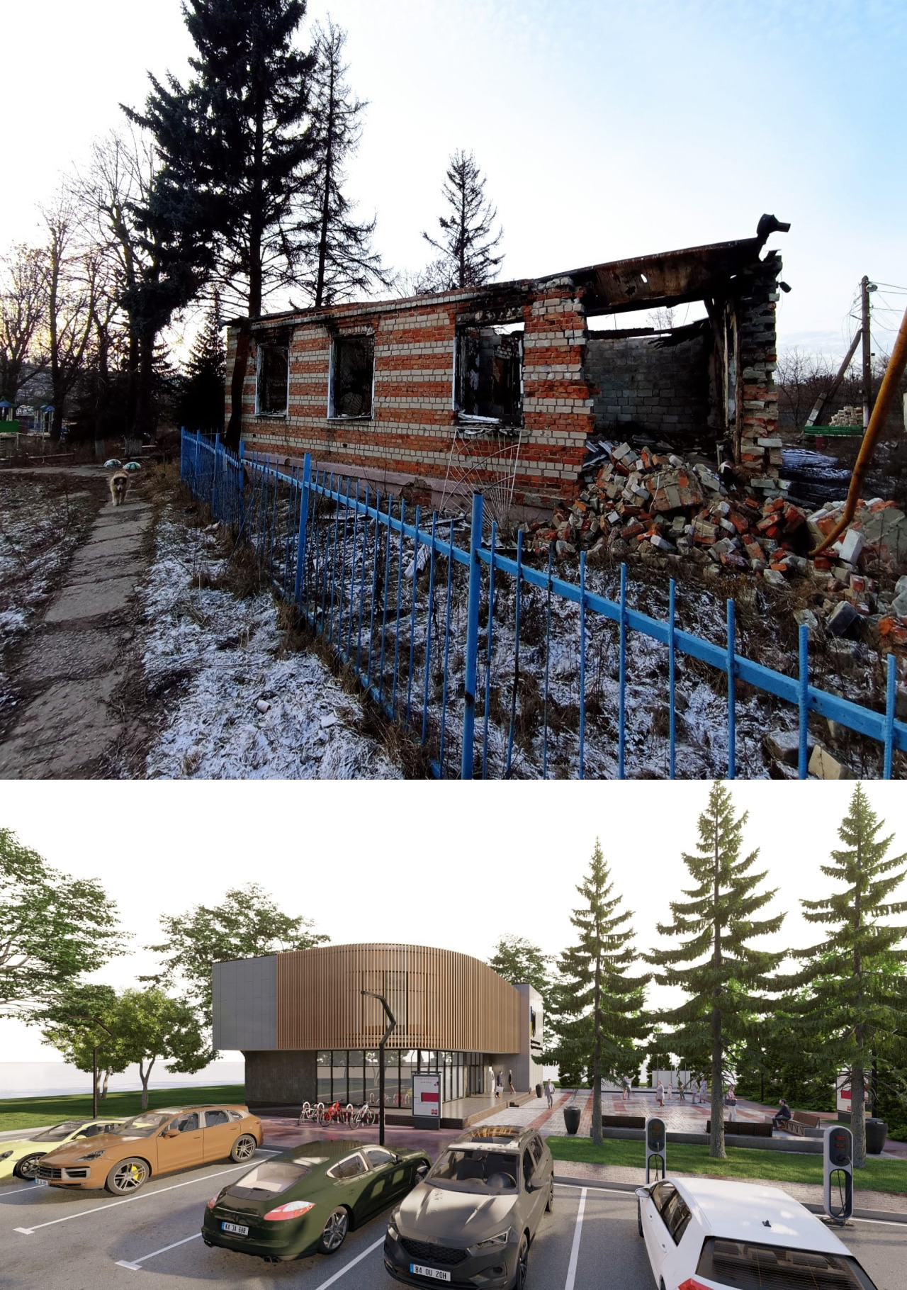 Projects of complete reconstruction/overhaul of public buildings, taking into account sanitary standards, standards for groups with limited mobility, energy saving standards, landscaping. A full range of project work has been completed. Photos of the destruction and the future appearance in the form of visualization are presented, upon request we can send the complete project for inspection.